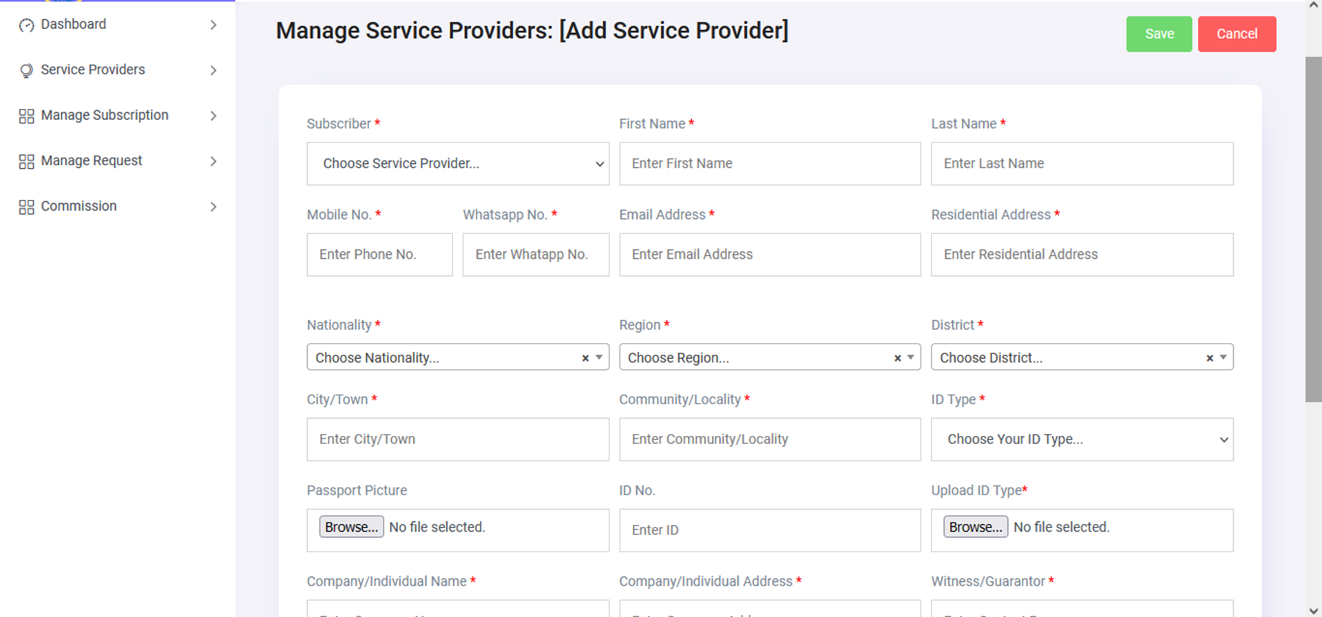 [1-Expand Service Providers Menu at the side bar, 2-Click Manage service providers, 3-Click Add New Button]
